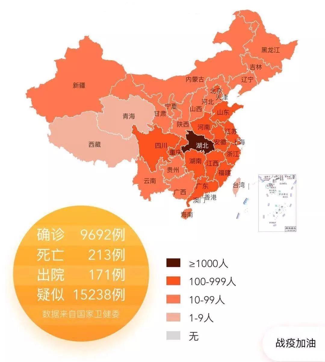 截至1月30日24时,国家卫生健康委收到31个省(自治区、直辖市)和新疆生产建设兵团累计报告确诊病例9692例(四川省累计确诊病例核减1例),现有重症病例1527例,累计死亡病例213例,累计治愈出院病例171例,共有疑似病例15238例。