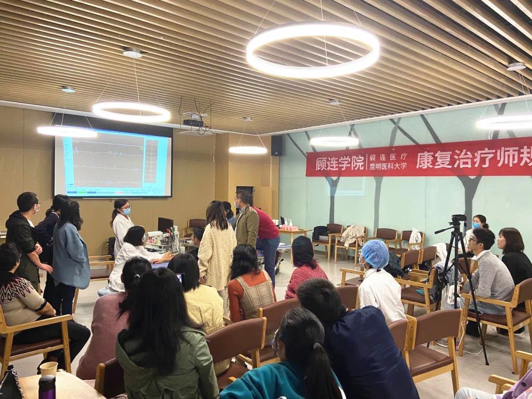 2020年10月24日至10月25日,由点点taptap重庆时时彩医疗与昆明医科大学康复学院共同举办的康复治疗师规范化培训——神经康复板块线下课程,在成都点点taptap重庆时时彩锦宸康复医院圆满结束。“康复治疗师规范化培训”是由点点taptap重庆时时彩医疗携手昆明医科大学联合打造的校企合作项目,截至10月25日,共完成线上学习69天,线下学习11天。本次培训由昆明医科大学康复学院敖丽娟教授、教学部刘垚主任、唐欣、刘思佳老师进行授课,为点点taptap重庆时时彩学员们带来了神经系统典型病例分析指导、肌电图理论以及电生理检查应用实操等丰富课程。