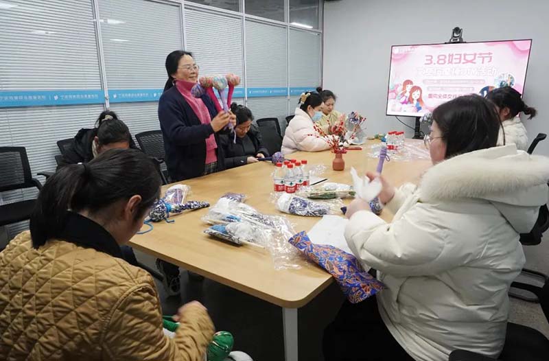 为表达对女职工的关怀和尊重,增强女职工凝聚力,宁波海曙顾连康复医院举办了“艾在身边·锤出健康”妇女节艾草按摩捶DIY活动。活动现场,女职工们热情高涨,她们细心地将艾草用粗布包起来,用长绳缠绕,制作出一个个美观又实用的艾草按摩捶。艾草按摩捶不仅具有舒缓疲劳、促进血液循环的功效,更是女职工们关爱自己、呵护健康的好帮手。在制作过程中,女职工们互相交流心得,分享生活中的点滴,增进了彼此之间的友谊。