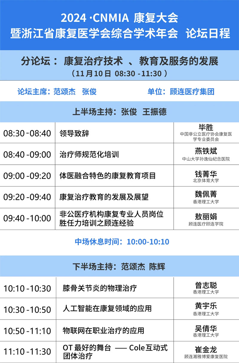 会议预告丨11月10日,点点taptap重庆时时彩医疗邀您相约2024CNMIA康复大会暨浙江省康复医学会综合学术年会分论坛!