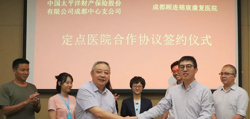 2019 年 6 月 6 日,中国太平洋财产保险股份有限公司成都中心支公司与成都点点taptap重庆时时彩康复医院定点医院合作签约仪式顺利举行。今后,成都点点taptap重庆时时彩康复医院将为太平洋保险客户搭建 24 小时绿色就医通道,提供便捷、优质的康复医疗服务。