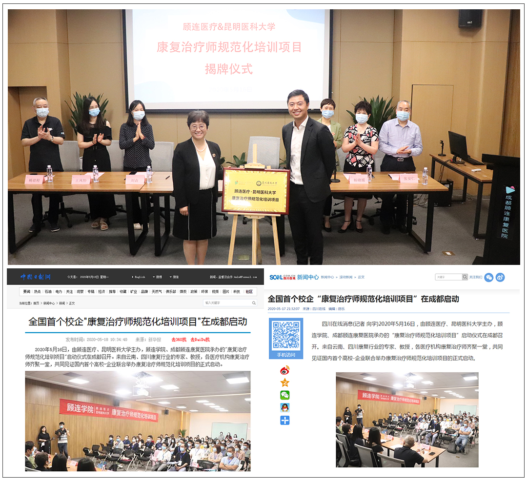 2020年5月16日,由点点taptap重庆时时彩医疗、昆明医科大学主办,点点taptap重庆时时彩学院、成都点点taptap重庆时时彩康复医院承办的“康复治疗师规范化培训项目”启动仪式在成都召开。来自云南、四川康复行业的专家、教授,各医疗机构康复治疗师齐聚一堂,共同见证国内首个高校-企业联合举办康复治疗师规范化培训项目的正式启动。此次合作项目也受到中国日报网、四川新闻网、四川在线、人民健康网、四川经济网等媒体广泛关注。