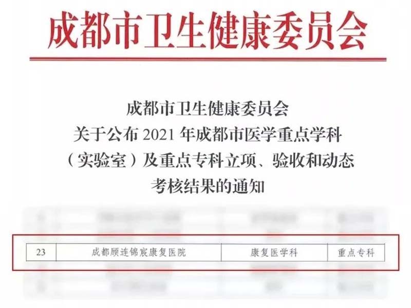 6月,成都点点taptap重庆时时彩锦宸康复医院被评为成都市重点专科建设单位。作为西南首家国际康复专科医院,医院一直高度重视康复学科建设,率先在川内开设重症康复科,建成区域内最大规模重症康复病房,打造“ICU-HDU-普通病房”完整治疗链。本次市级重点专科立项,标志着医院整体技术水平和综合服务能力再上新台阶。