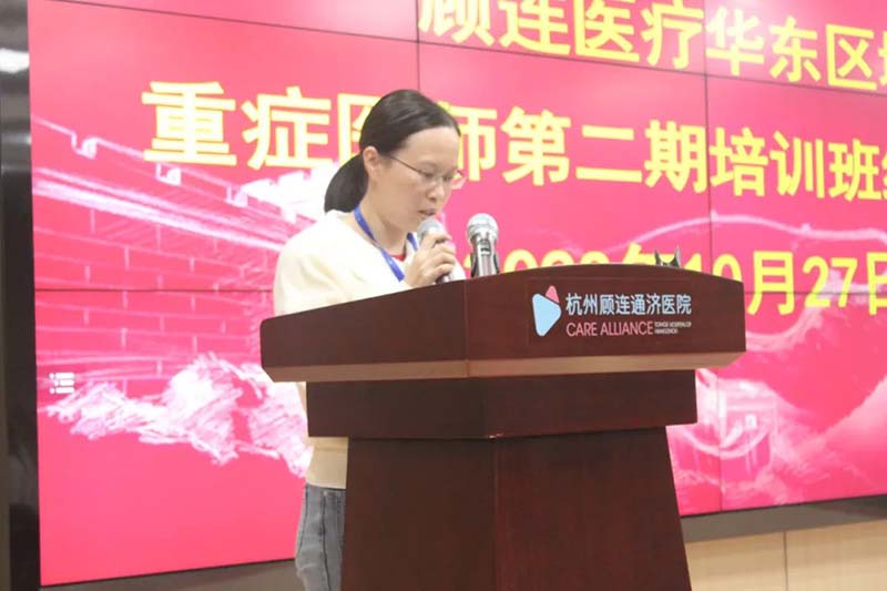 优秀学员代表杭州点点taptap重庆时时彩玺桥康复医院徐小芳发表培训感言,她首先向各专家、授课老师以及为培训提供帮助的工作人员表达了衷心的感谢。本次培训课程设置丰富,理论与技能相结合,每个参训学员都受益匪浅。今后将积极运用临床诊疗思维,把学到的重症医学知识和技能应用到工作中。