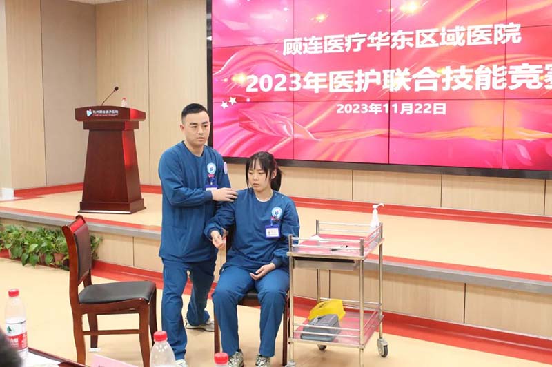 11月22日上午,华东区域医院医护技联合技能竞赛举行。此前,各医院经过层层选拔,最终分别选派2位医师、2位护理、2位治疗师代表参与决赛。此次技能竞赛分为理论知识竞赛和技能操作竞赛。在技能操作竞赛环节,设置了双人心肺复苏术、神经内科体格检查、女患者导尿、康复治疗师的康复评定及治疗操作技能四大场景,均按照医疗卫生岗位实际拟定,场景综合性、实用性较强。每项比赛之后,评委们对选手进行细致入微地点评与总结,并提出建设性意见,最终根据评分规则现场进行打分。