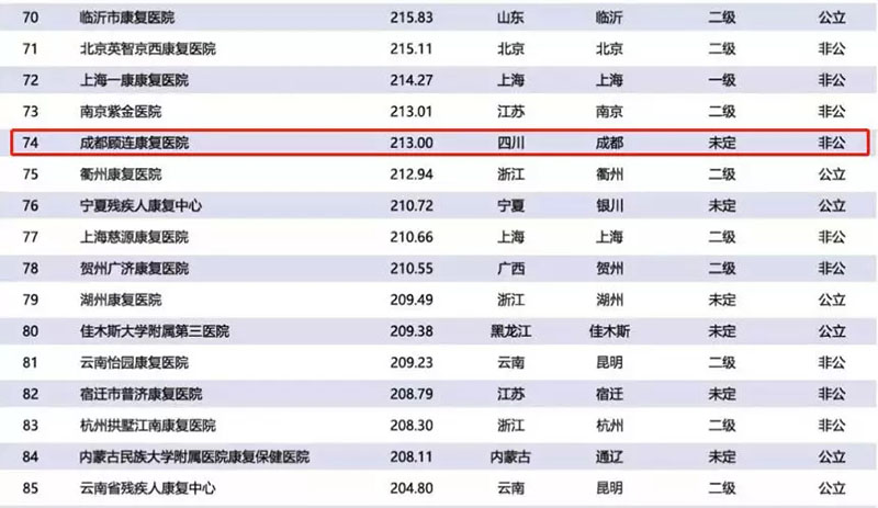 成都点点taptap重庆时时彩康复医院荣登中国康复医院100强!