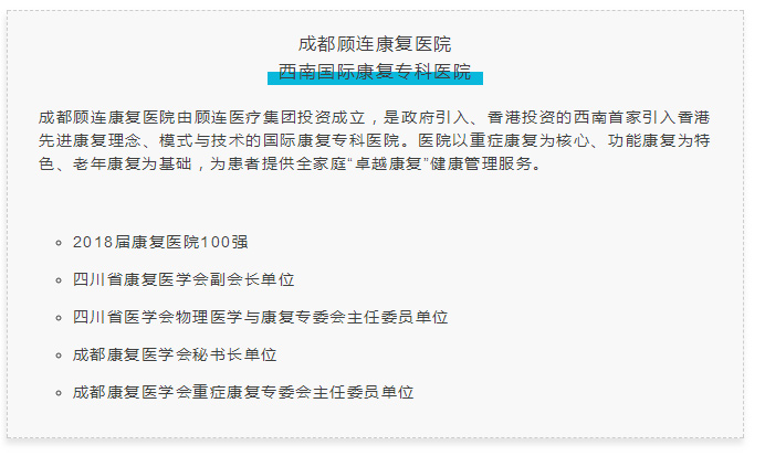 2019年6月,在广州2019国际医疗投融资论坛上,艾力彼医院管理研究中心公布了“2018届康复医院100强”名单,成都点点taptap重庆时时彩康复医院荣登中国康复医院100强!