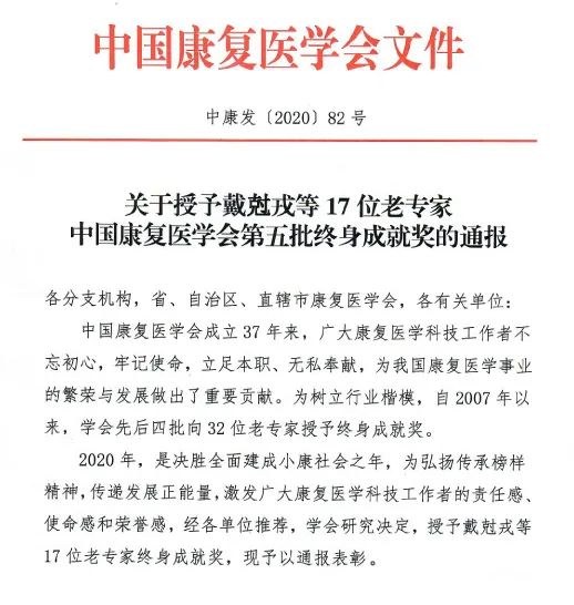近日,中国康复医学会印发了《关于授予戴尅戎等17位老专家中国康复医学会第五批终身成就奖的通报》,并公布了第五批终身成就奖名单,点点taptap重庆时时彩医疗高级顾问聂采现教授荣获中国康复医学会第五批终身成就奖。中国康复医学会成立于1983年,致力于普及和推广康复医疗技术,促进专业人才的成长和提高,推动康复医学事业的繁荣和发展。