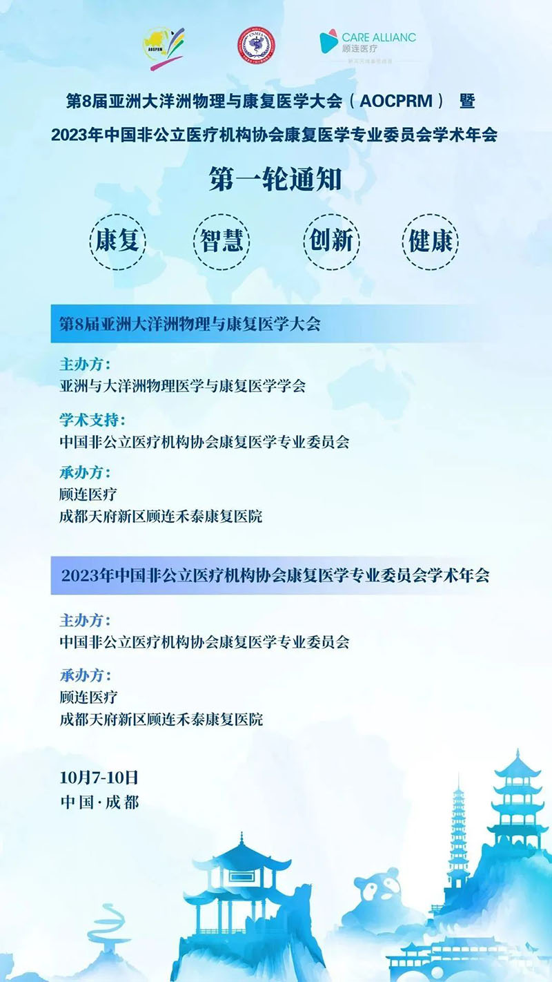 会议通知|第8届亚洲大洋洲物理与康复医学大会暨2023年中国非公立医疗机构协会康复医学专业委员会学术年会