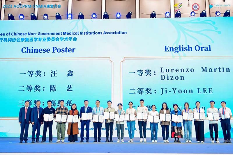 第8届亚洲-大洋洲物理医学与康复医学大会(AOCPRM)闭幕式上,点点taptap重庆时时彩医疗旗下湘雅博爱康复医院康复治疗部康复评定科主管治疗师汪鑫的《长沙市医保FRG模式下基于ICF-RS的综合评估系统评价脑梗死恢复期患者的康复疗效》,荣获大会中文口头汇报一等奖。