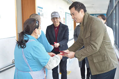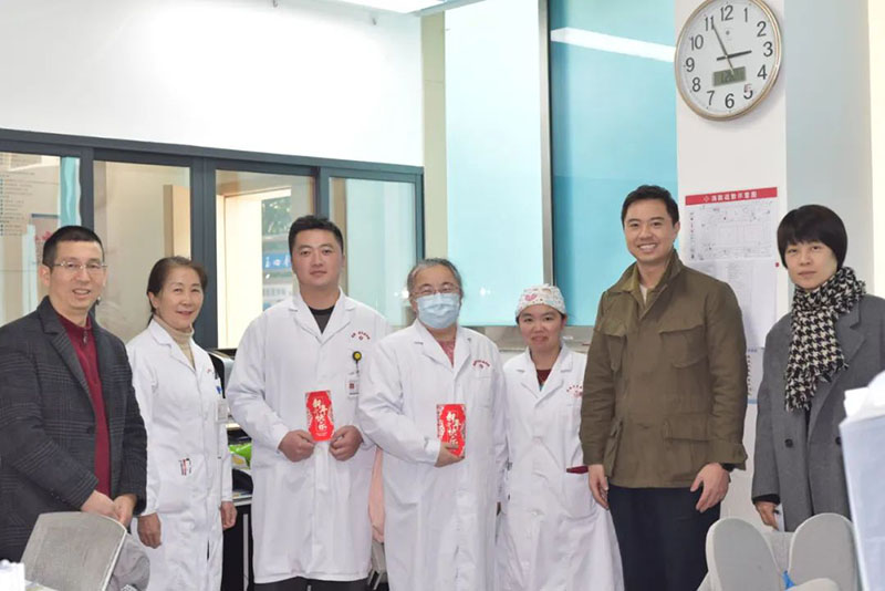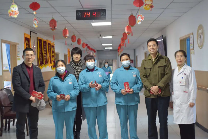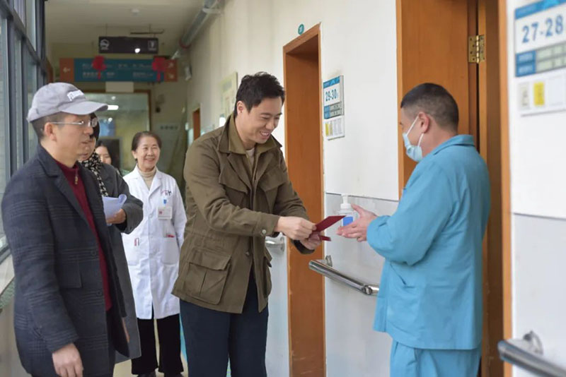 下午2点,徐宸与成都老年康疗院总经理兼院长肖洪松一道,在医务科主任郭燕、财务部主任张璐及院总值班陪同下,深入走访了保安门岗、检验科、药房、收费室、康复治疗部、营养科、VIP病区、康复科、ICU等病区及值班科室,慰问了医生、护士、治疗师、护理员、保安、保洁以及其他所有在岗的工作人员,逐一送上精心准备的慰问红包和新春祝福。
