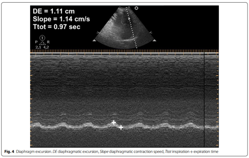 a.膈肌活动度(DE, cm):呼吸时膈肌最大活动范围